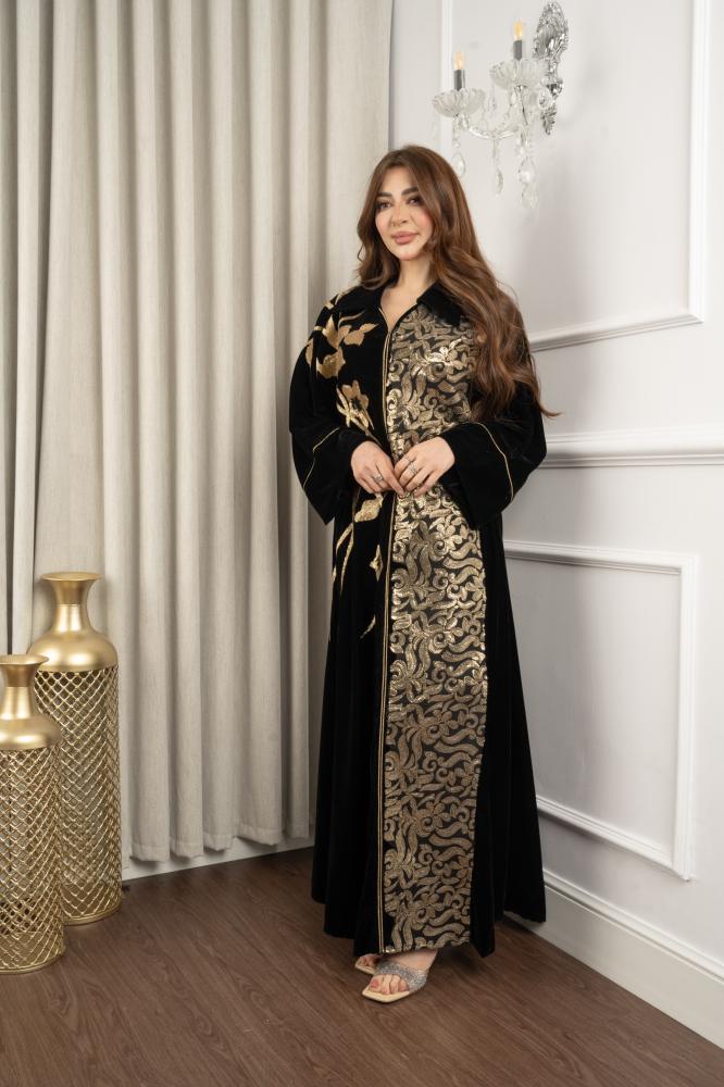 جلابيه مخمل بتطريز كمبيوتر باللون الذهبي