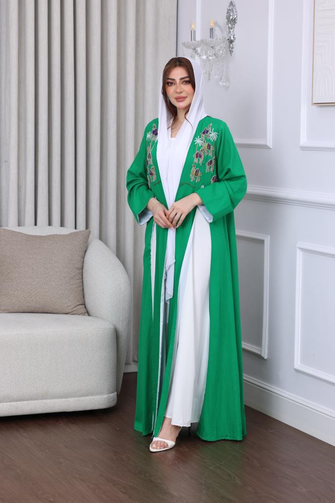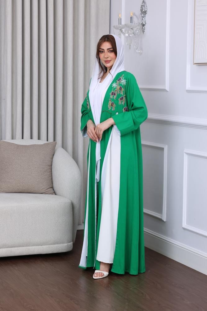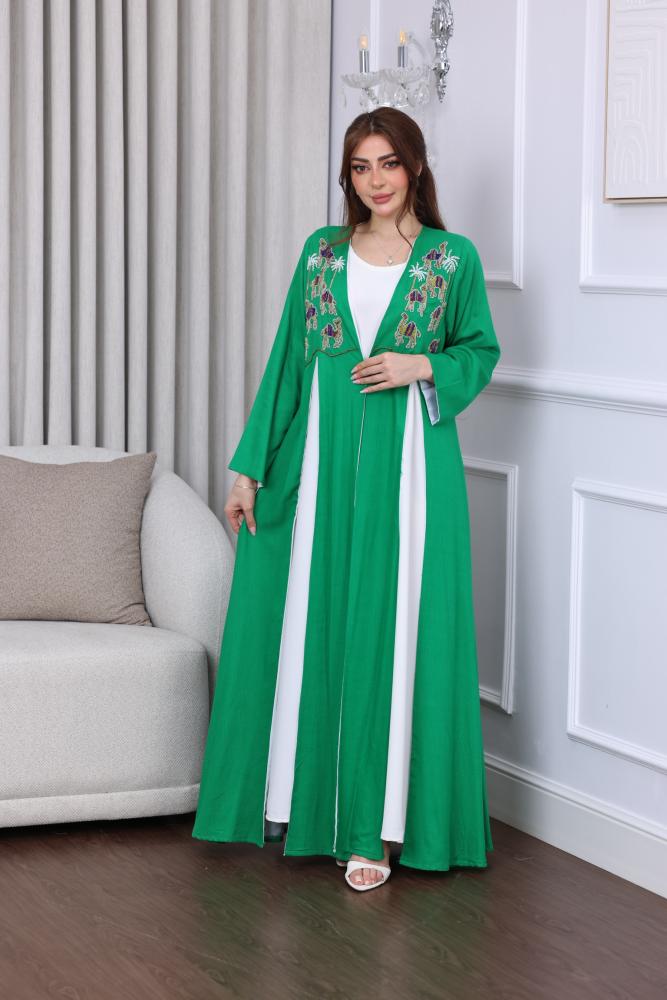 جلابية لينن بتطريز يدوي قطعتين