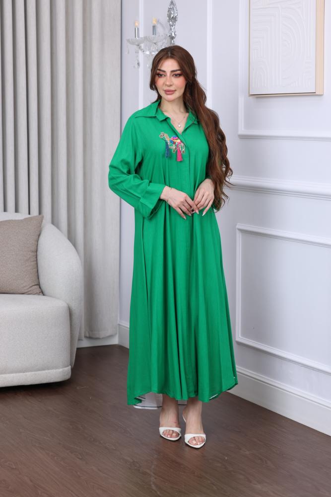 الجلابية مصنوعة من قماش اللينن المميز بخفته وراحته، ومزينة بتطريز بدوي يعكس جمال التراث بأسلوب عصري أنيق.