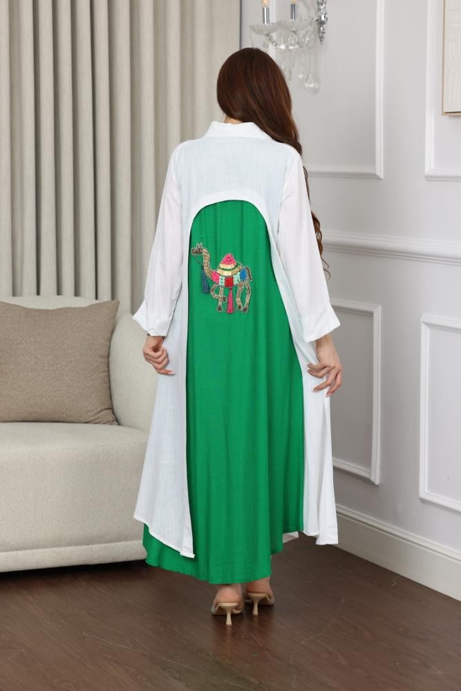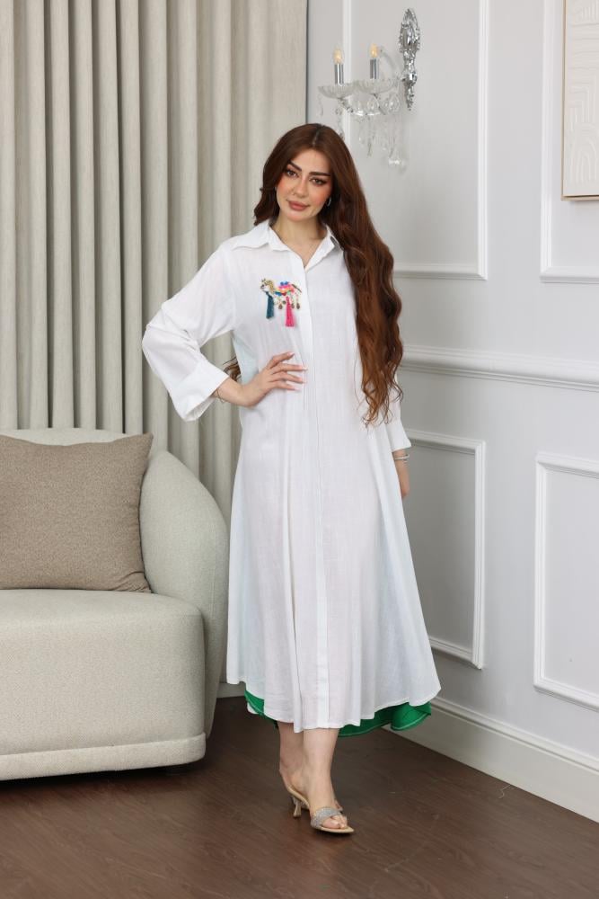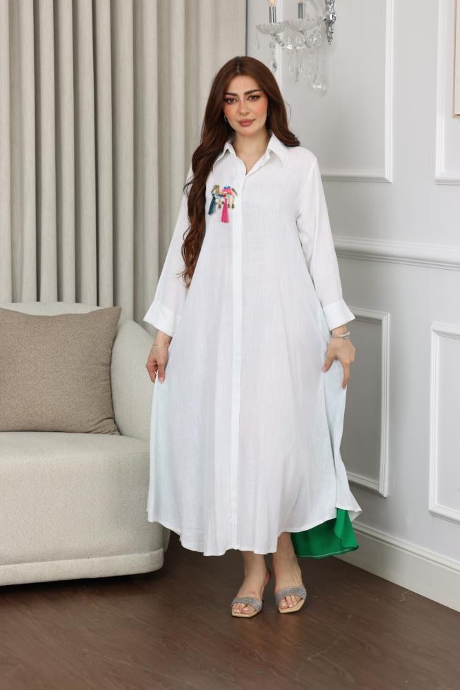 جلابية لينن بتطريز بدوي لليوم الوطني من ميلاف