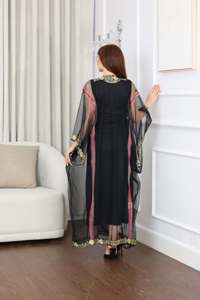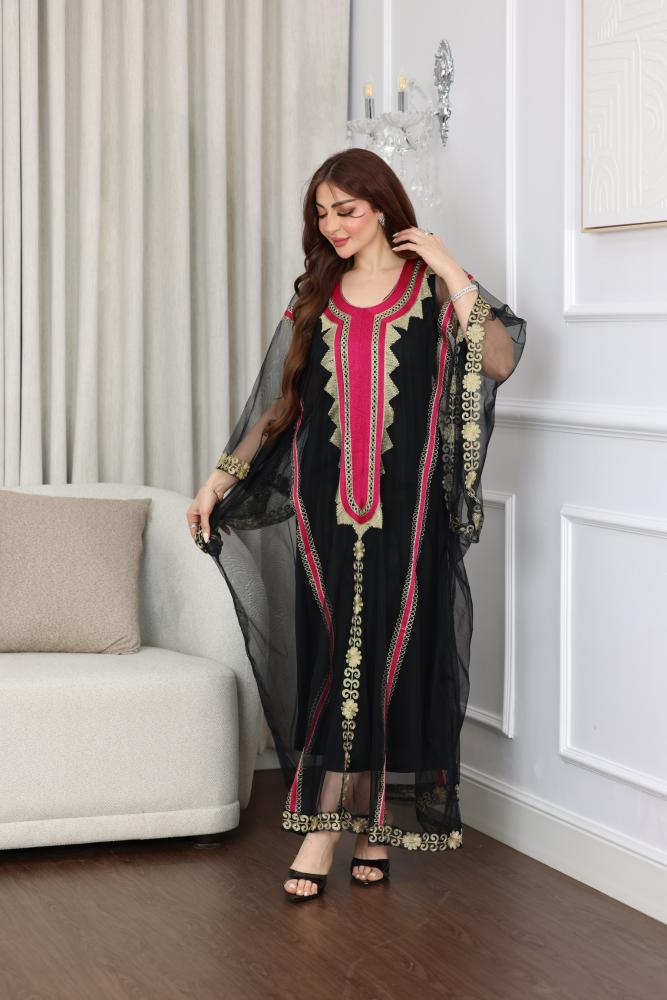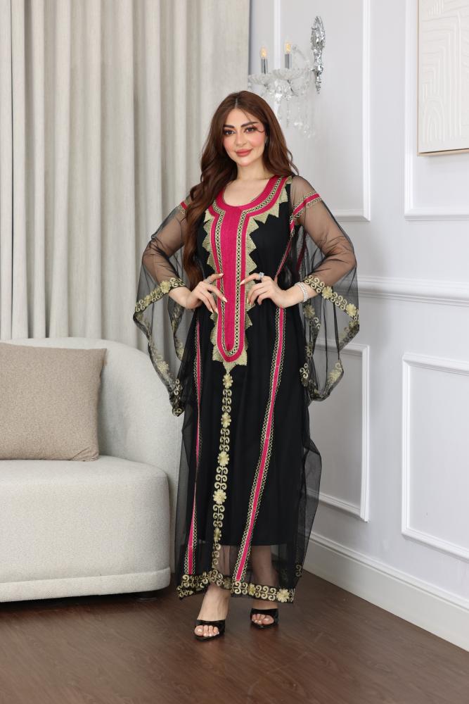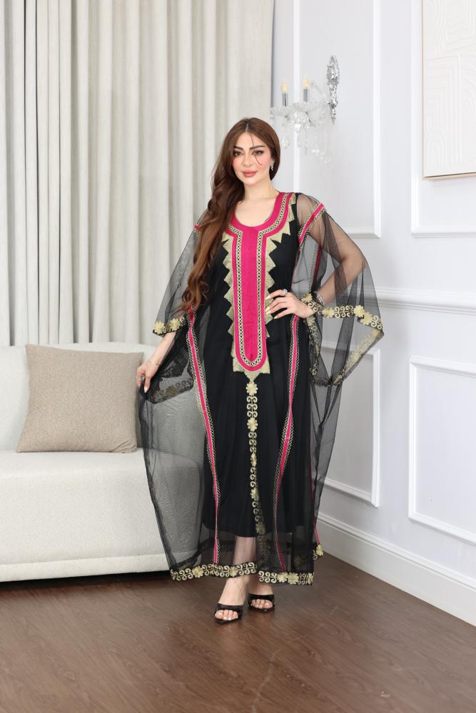 مواصفات جلابية سوداء مطرزة بخامة التل