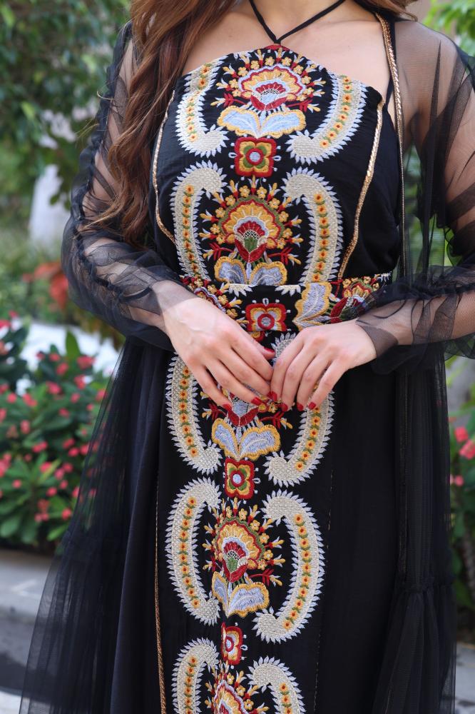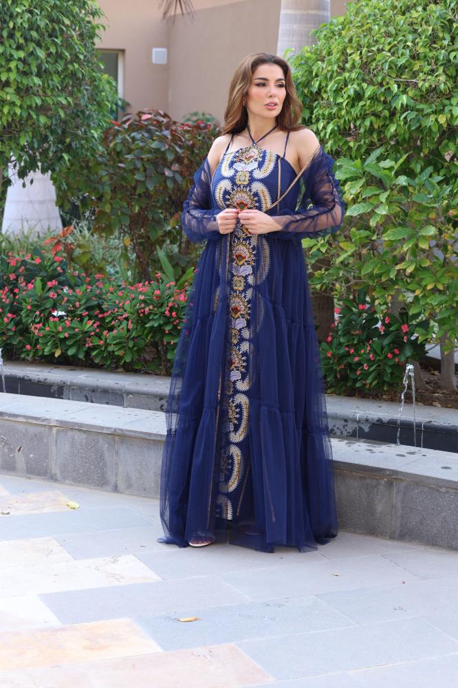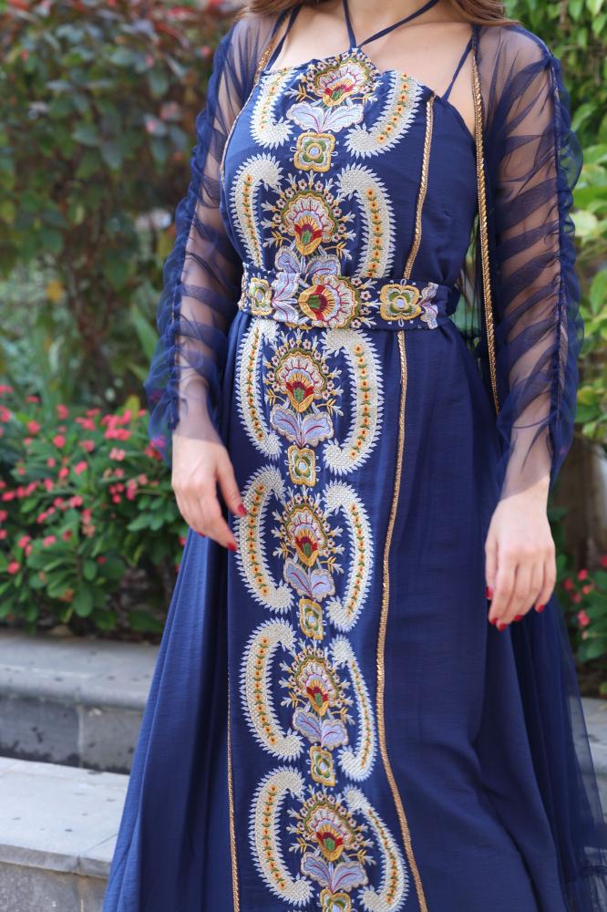 جلابيه قطعتين بخام التل وتطريز كمبيوتر