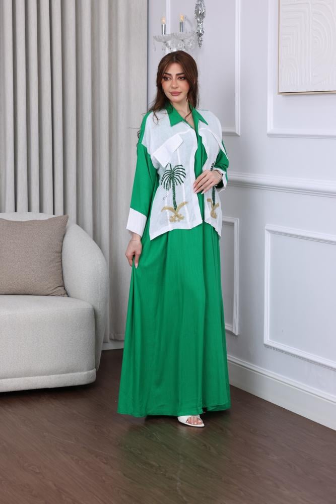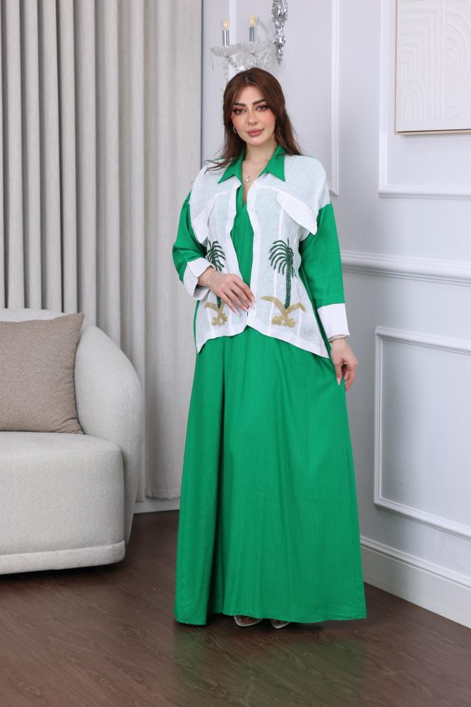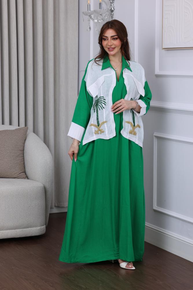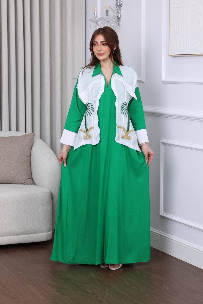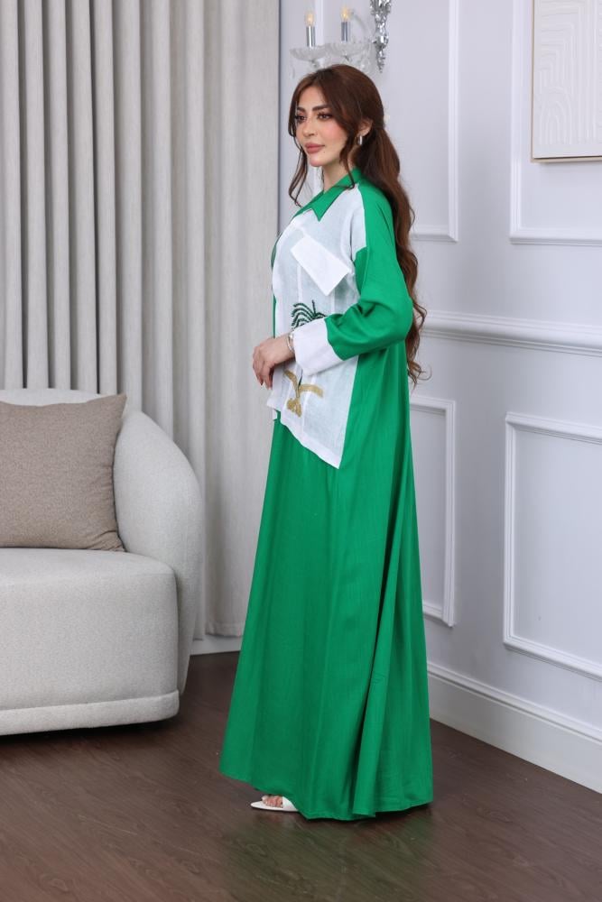 جلابية لينن بتطريز بدوي لليوم الوطني من ميلاف