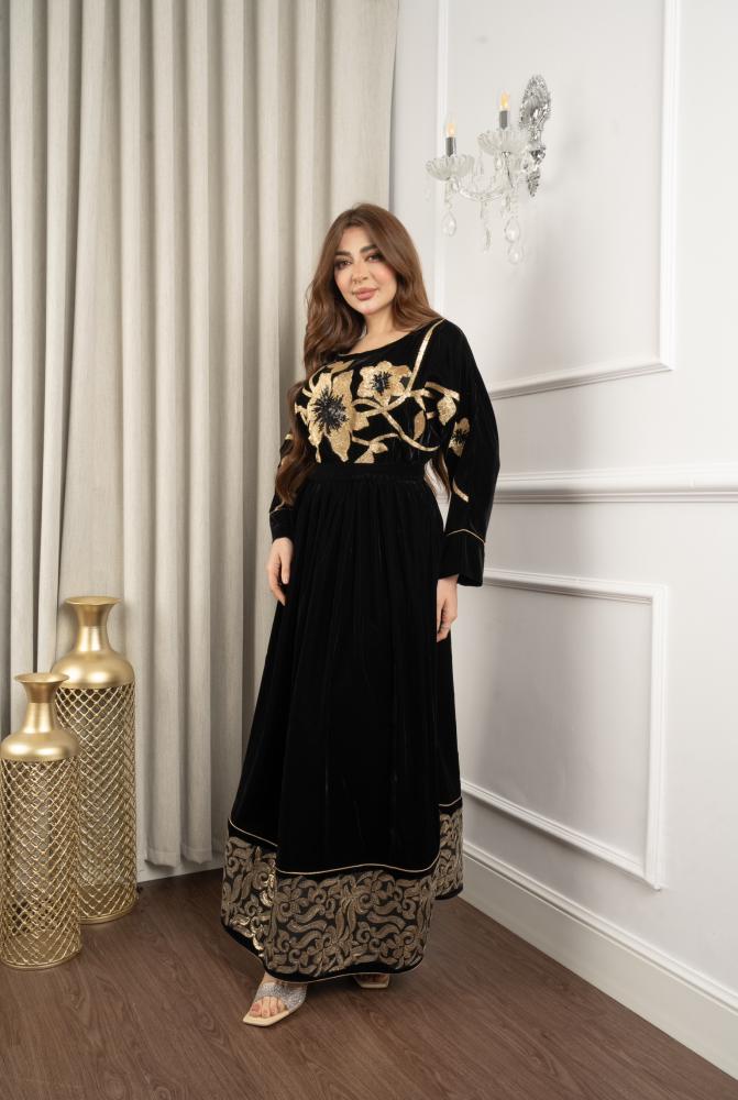 جلابيه مخمل بتطريز كمبيوتر باللون الذهبي