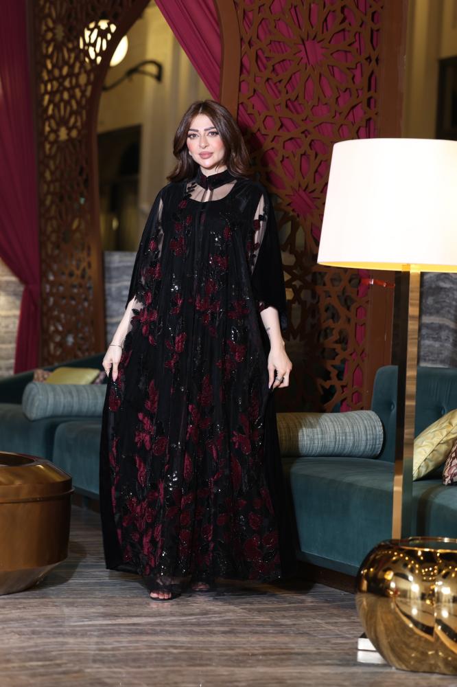 - اللون: أسود أساسي مزين بتطريزات عنابية لافتة تضفي عمقًا وأناقة.