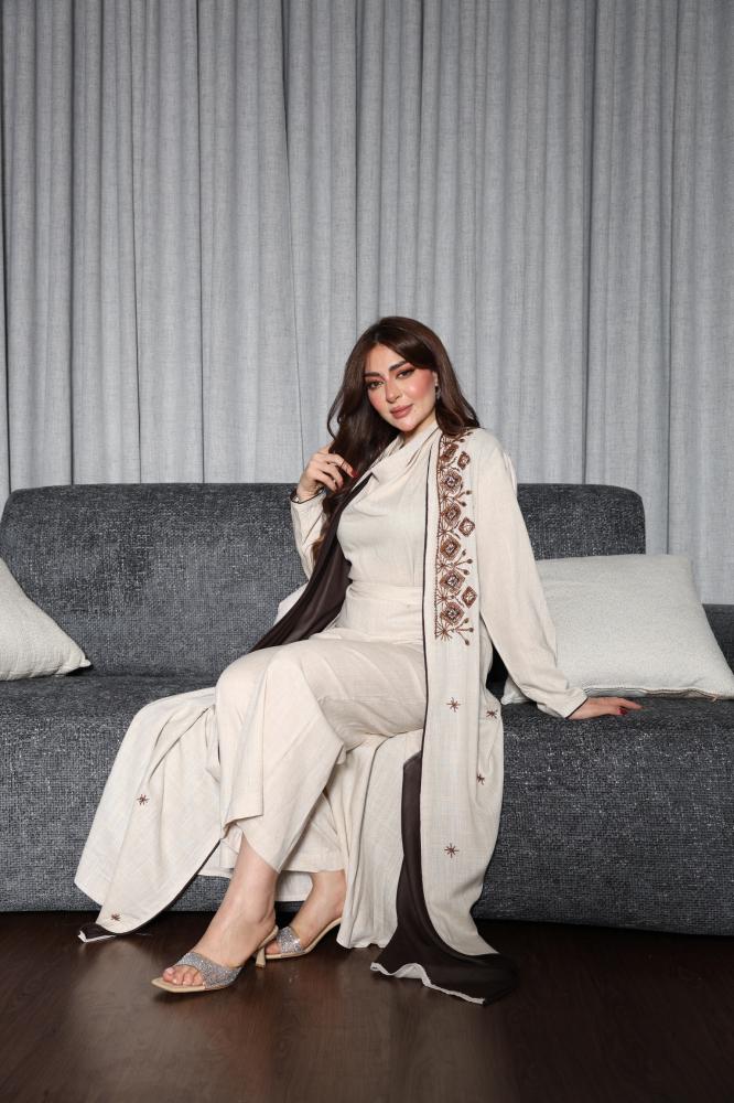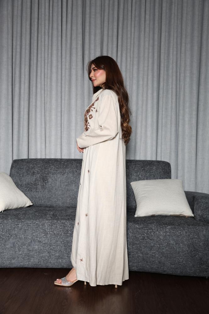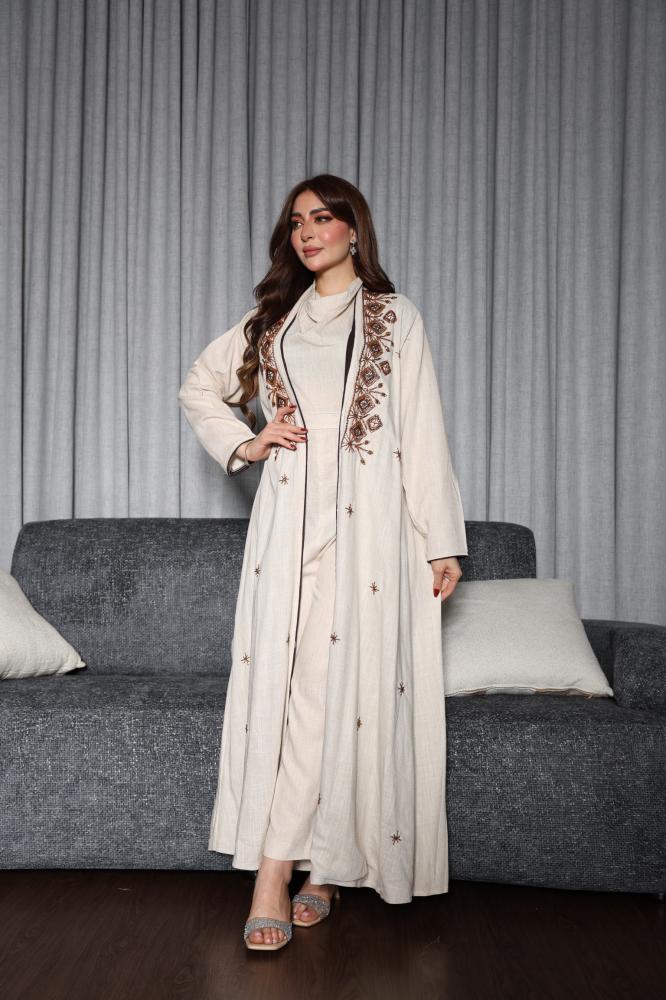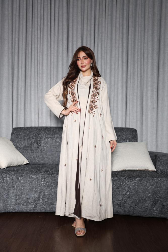 عبايه بتطريز يدوي وجمبسوت لينن