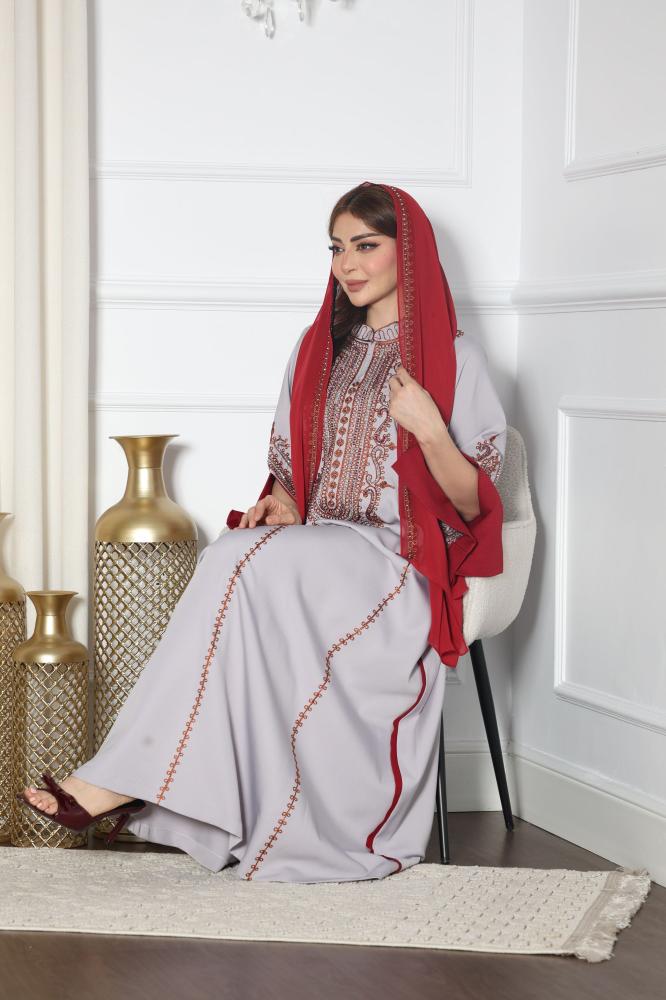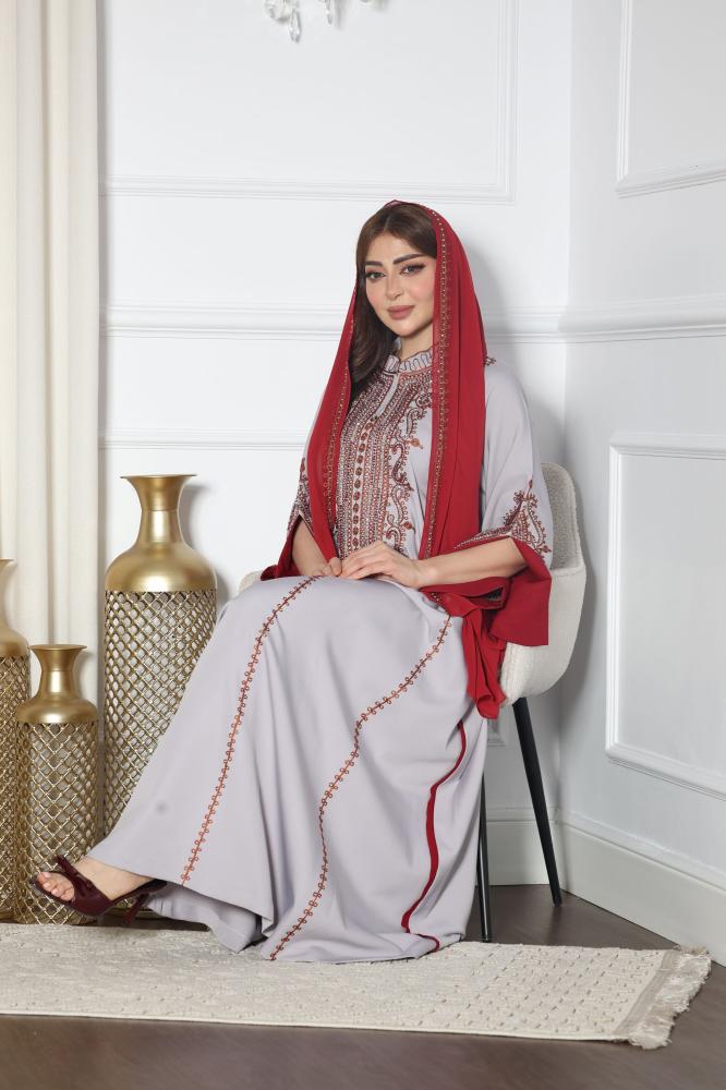 - تطريز يدوي فاخر يضفي على المخوار لمسة فنية ودقيقة، مما يجعله قطعة فريدة في خزانة ملابسكِ.