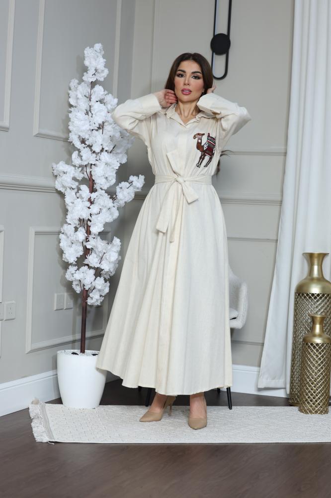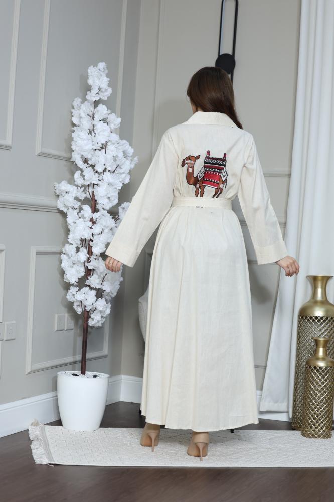 - الاسم: جلابيه لينن مطرزه من الخلف بالجمل العربي